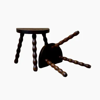 Duo de 2 petits tabourets tripodes en bois tourné. Ces tabourets des années 50 s'invitent dans nos intérieurs. A mixer sans hésiter avec des matières naturelles pour une décoration pleine de caractère et résolument tendance.